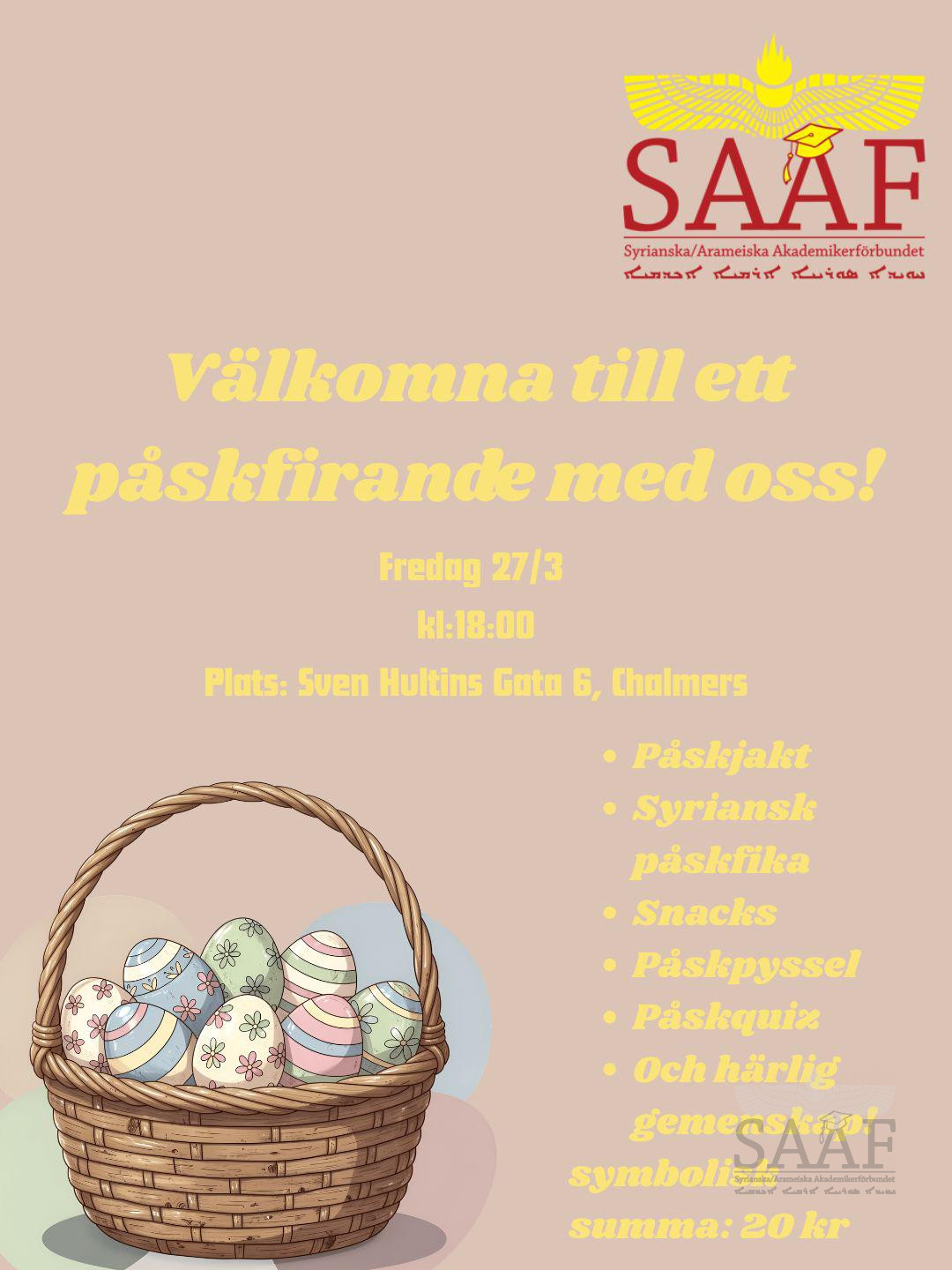 Hos oss får du en möjlighet att nätverka och utvecklas med andra syrianska/arameiska akademiker runt om i Sverige. Du får chansen att bli del av en unik gemenskap med minnen och vänner för livet. Ta den!