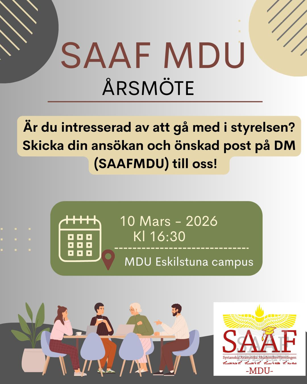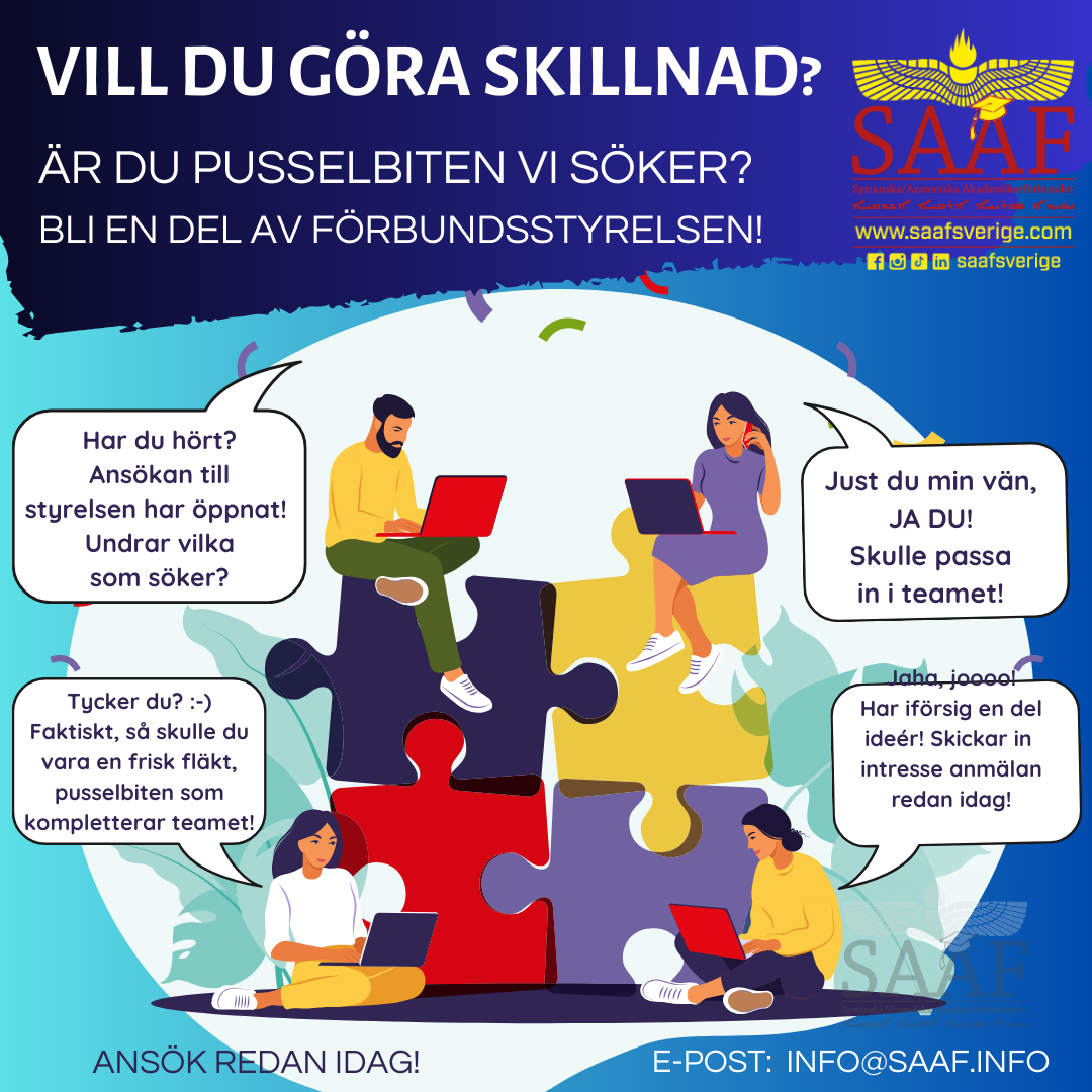 Hos oss får du en möjlighet att nätverka och utvecklas med andra syrianska/arameiska akademiker runt om i Sverige. Du får chansen att bli del av en unik gemenskap med minnen och vänner för livet. Ta den!